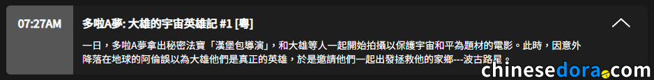 延伸閱讀[香港] myTV SUPER 2023/11/16重新上架《電影多啦A夢:大雄之宇宙英雄記》