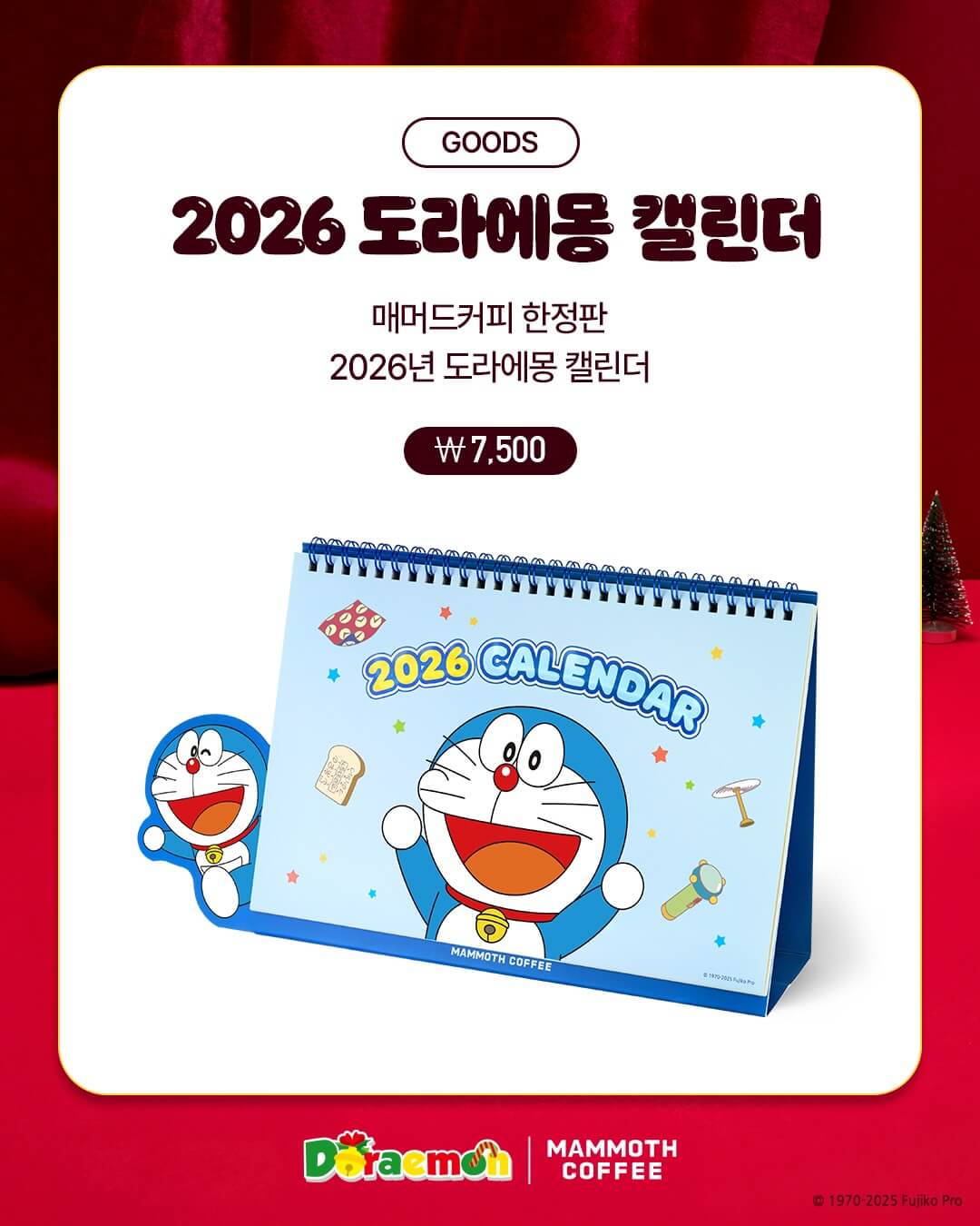 2026 哆啦A夢年曆,7,500 韓元(Mammoth Coffee)