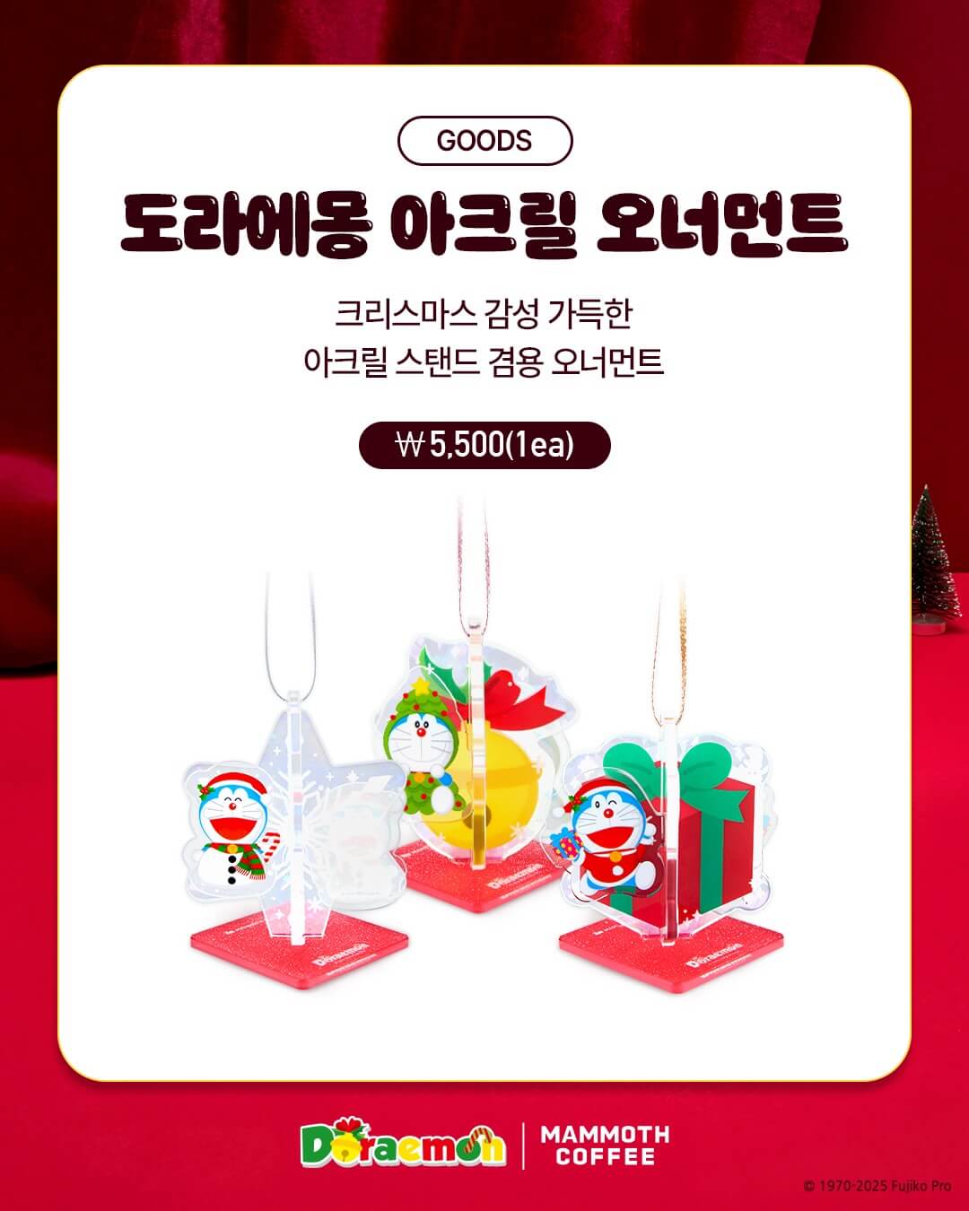 哆啦A夢壓克力聖誕吊飾,5,500 韓元(Mammoth Coffee)