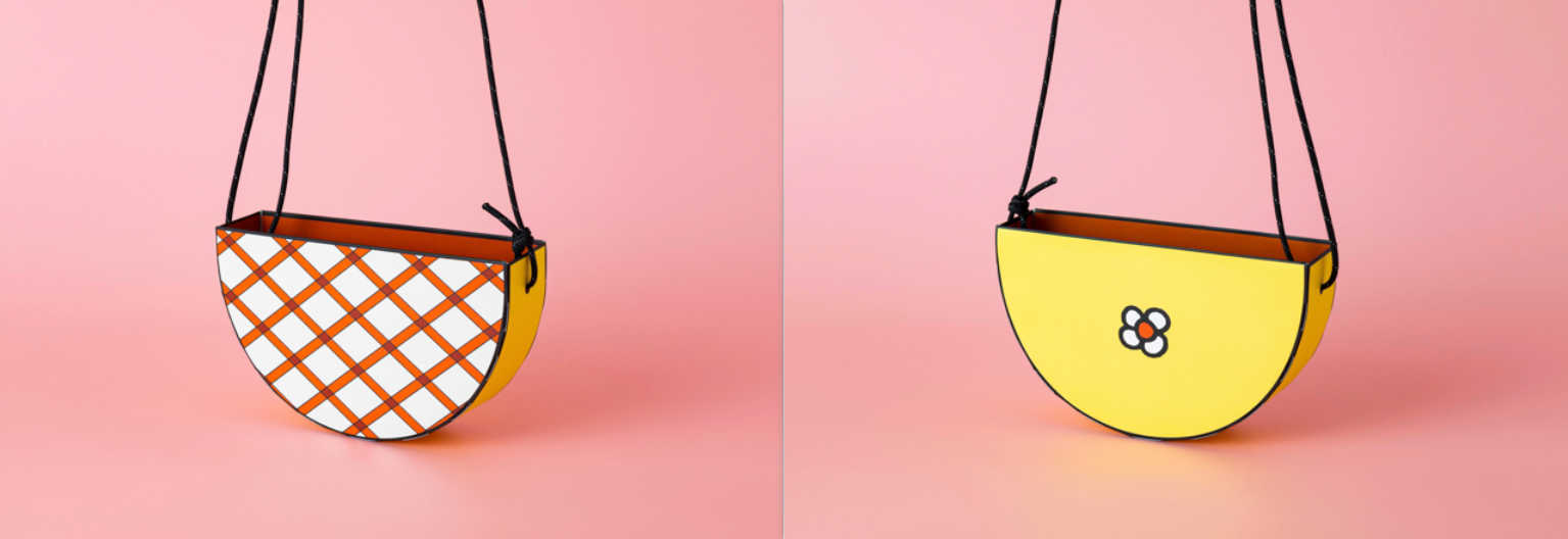 以紙材製成的輕量側背包,尺寸約 12×20.5×5 公分,耐用且可調整背帶長度,適合兒童與成人。