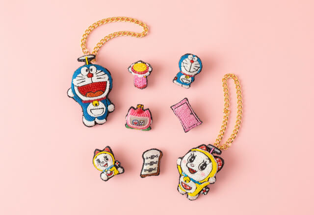 追加新品部分,川崎市藤子・F・不二雄博物館攜手日本手工刺繡品牌 tamaoworld 推出合作系列,以精緻珠飾與亮片製作,並由職人以全手工刺繡完成,每一針都細緻呈現哆啦美等角色溫柔可愛的神情。小巧而富含故事感的刺繡設計,為日常穿搭增添亮點,是兼具收藏與時尚度的特色單品。