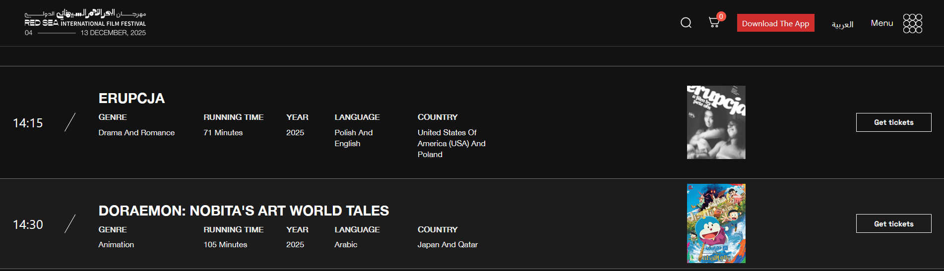 紅海國際影展官方網站節目表已能看到《大雄的繪畫世界物語》的英文介紹頁面 ,在當地時間下午兩點半上映,售價門票為 80 沙烏地里亞爾(約新台幣 670 元)。