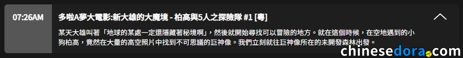 延伸閱讀[香港] myTV SUPER 2023/11/22重新上架《電影多啦A夢:新大雄的大魔境 – 柏高與5人之探險隊》