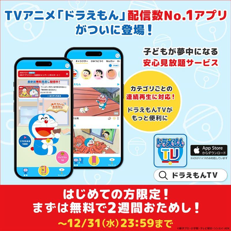 [日本] 串流平台「哆啦A夢TV」迎接成立兩週年 推出專用 iOS App
