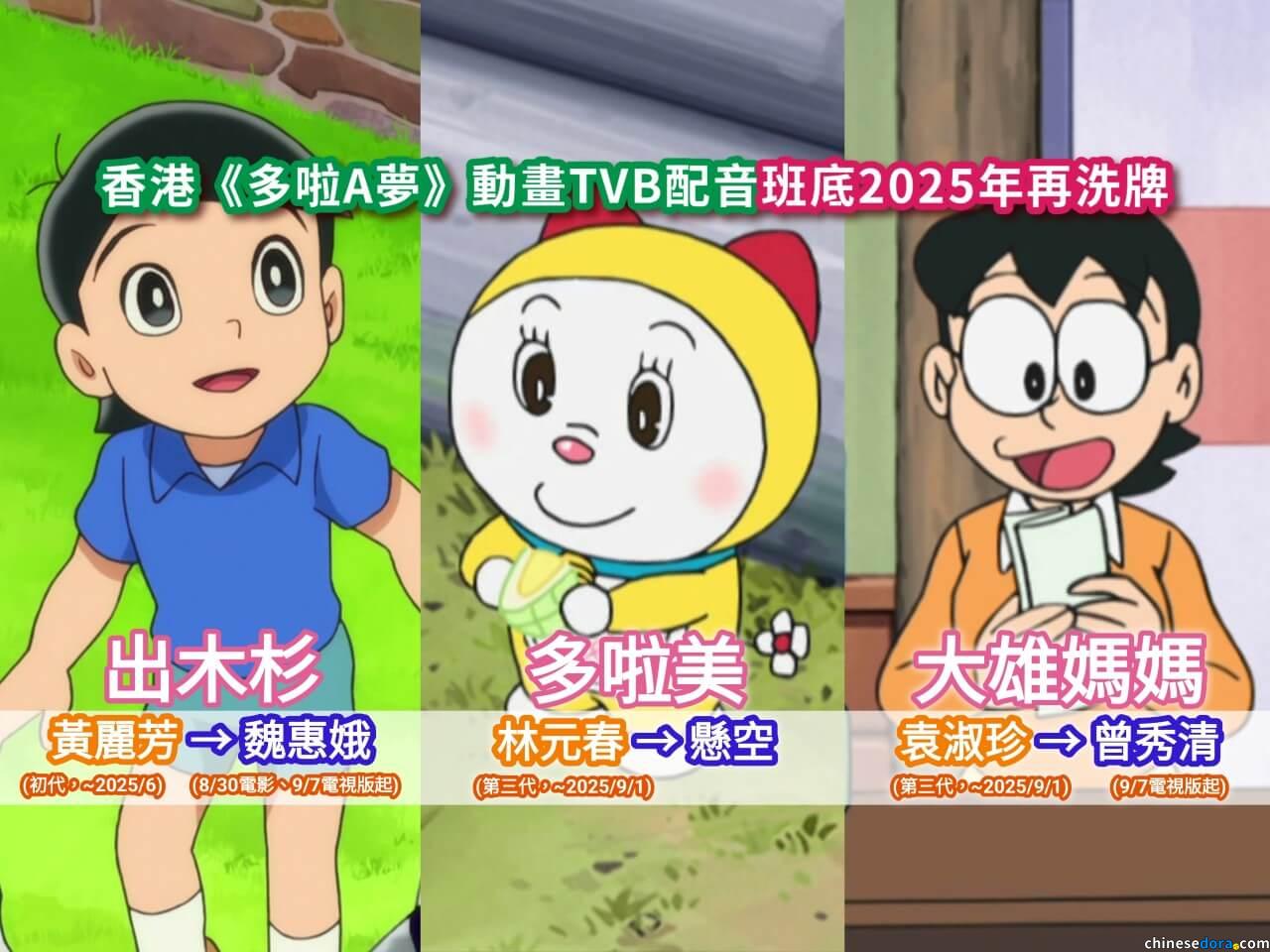 [香港] 《多啦A夢》動畫TVB配音班底2025年9月再洗牌:大雄媽媽轉曾秀清、魏惠娥繼《宇宙小戰爭2021》再演出木杉
