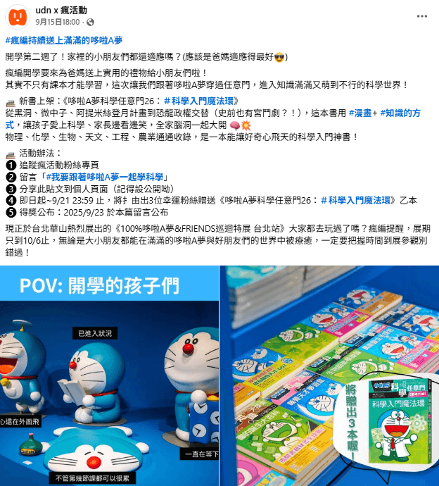 [台灣] udn x 瘋活動贈書抽獎活動《哆啦A夢科學任意門26:科學入門魔法環》9/21為止