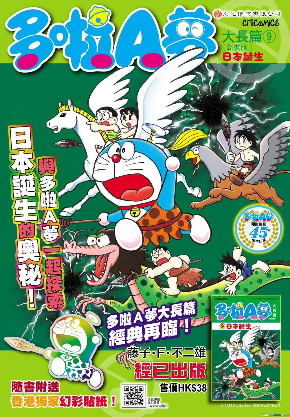 [香港] 《多啦A夢大長篇9 日本誕生》2025年9月再版 隨書加送香港獨家幻彩貼紙 紀念電影系列45周年