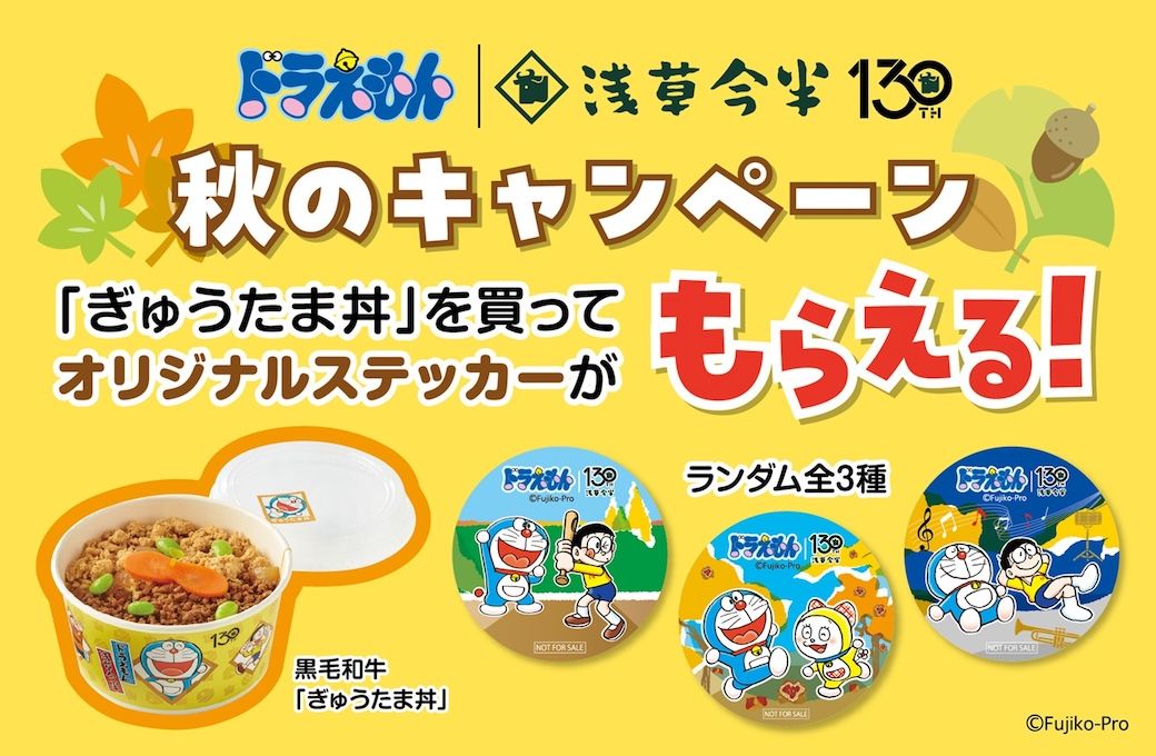 [日本] 人氣贈品活動回歸!秋季期間購買壽喜燒老店「淺草今半」哆啦A夢「牛丼」送原創貼紙
