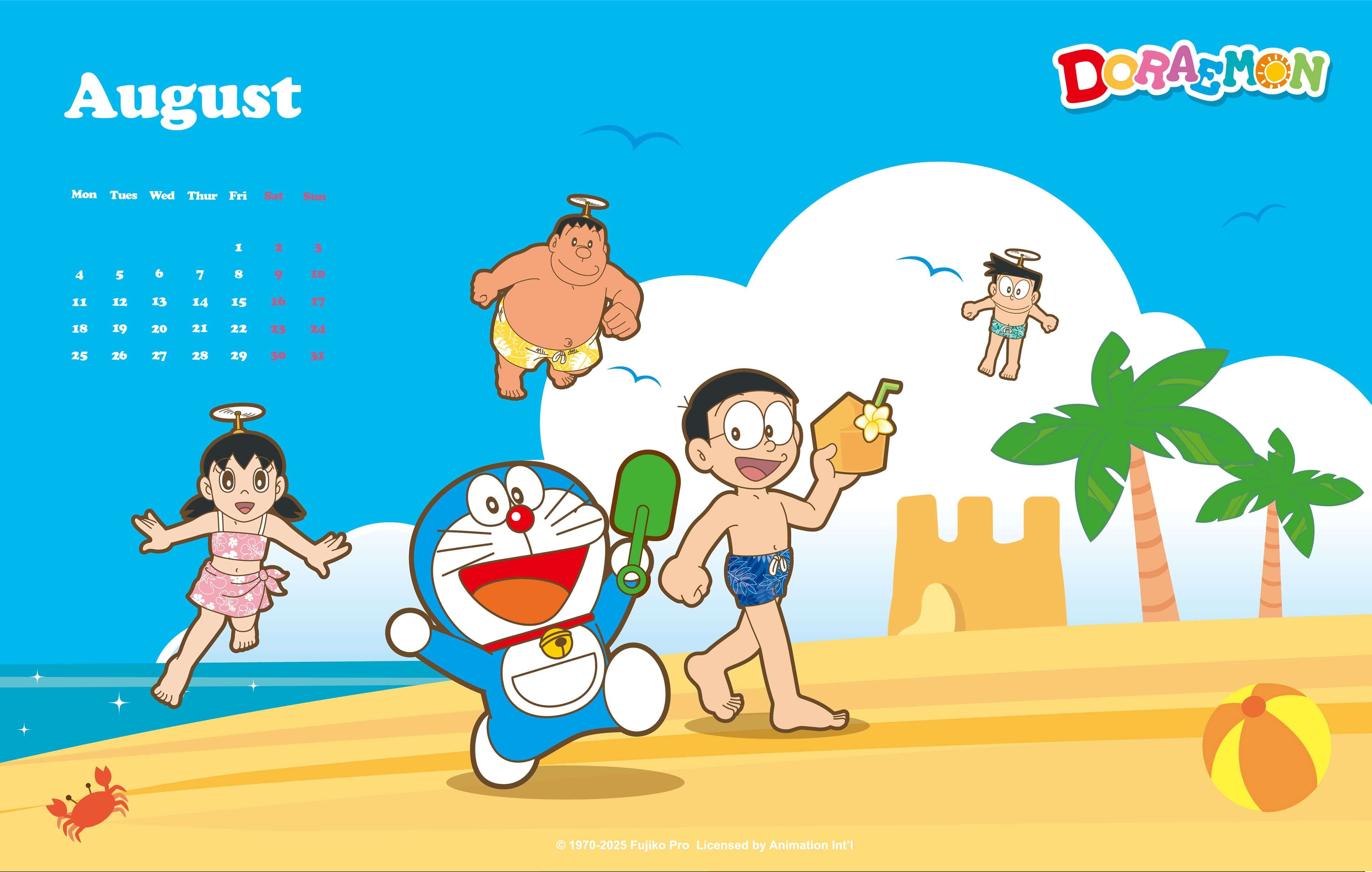 [桌布] 2025年8月哆啦A夢中文官網桌布:與好朋友一起去海邊玩!