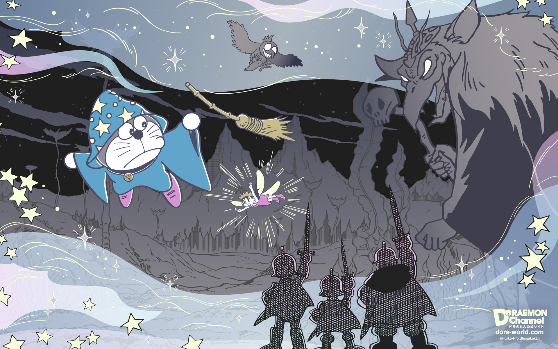 [桌布] 2025年10月日本哆啦A夢官網桌布:大雄與夢幻三劍士