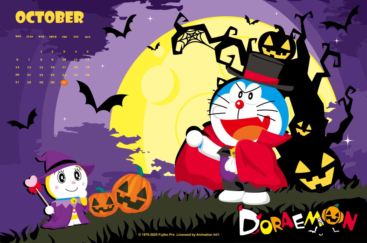 [桌布] 2025年10月哆啦A夢中文官網桌布:萬聖節氣氛滿滿