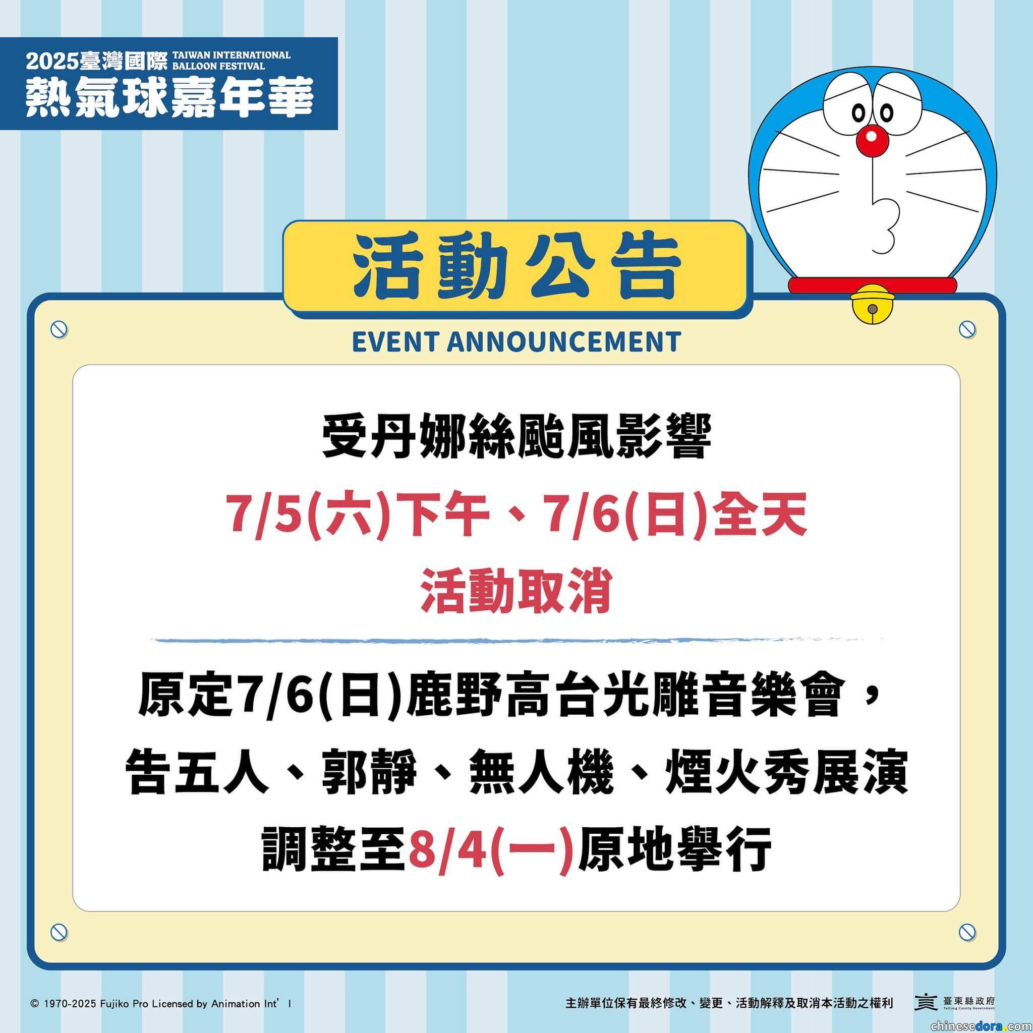 [台灣] 活動緊急公告!2025台灣國際熱氣球嘉年華 7/5下午場、7/6全日活動取消