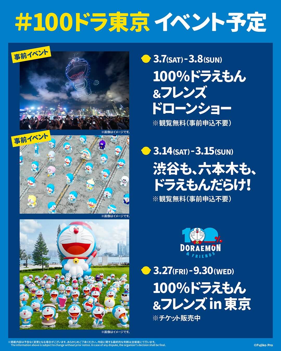 “100% Doraemon & Friends in Tokyo” is scheduled from March 27 to September 30 Tickets after June will be sold in batches