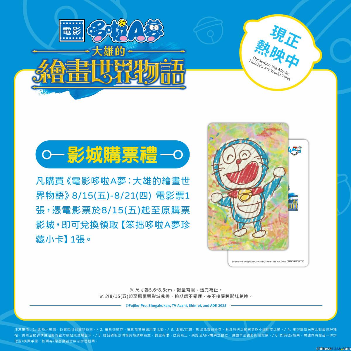 [台灣] 雄雄!加油!《電影哆啦A夢:大雄的繪畫世界物語》第五週影城購票禮公開 「笨拙哆啦A夢珍藏小卡」8/15~8/21電影院限定兌換