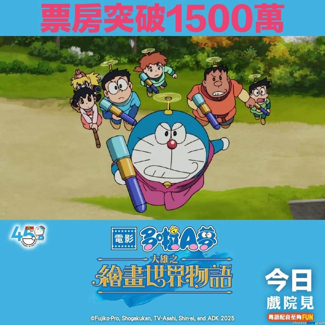 [港澳] 《電影多啦A夢:大雄之繪畫世界物語》香港及澳門累積票房已突破1500萬港元 澳門佔約100萬票房