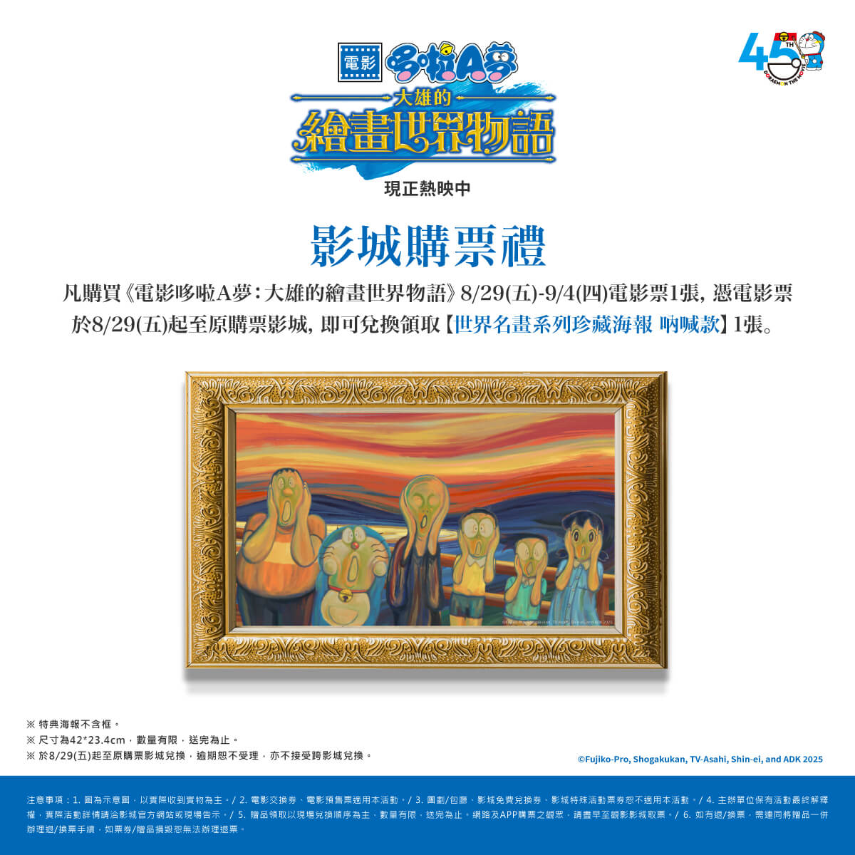 [台灣] 世界名畫送給你!《電影哆啦A夢:大雄的繪畫世界物語》第七週影城購票禮公開 「世界名畫系列珍藏海報 吶喊款」8/29~9/4電影院限定兌換