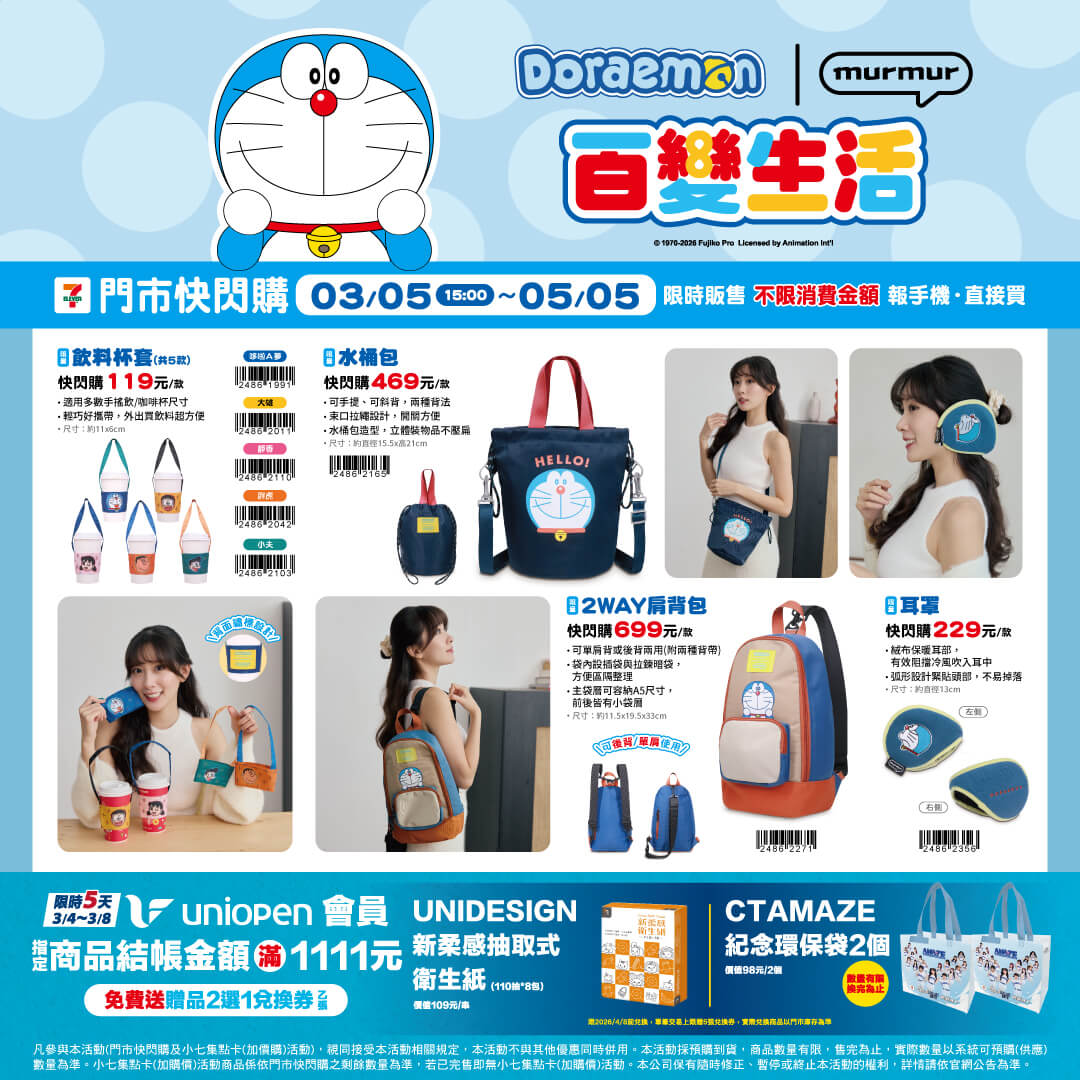 [台灣] 7-ELEVEN《哆啦A夢百變生活》精品快閃購活動3/5開跑 全方位療癒你的 2026!